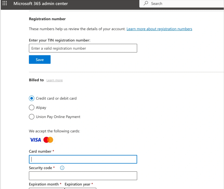 填完一些资料来到这里, TIN随便填几个数字, 支付选 Alipay